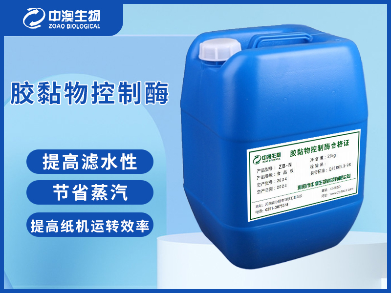 ZB-N膠黏物控制酶適用于以二次纖維為原料的造紙廠,可有效降解膠黏物中的酷類物質,經酶處理后,膠黏物表面粘性降低,附聚成大膠黏物顆粒的可能性大大降低。能夠減少常規膠黏物控制劑的使用,改善網毯沉積問題、烘缸粘結問題。減少紙機斷頭,降低企業生產成本。